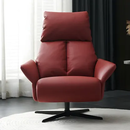 Modern Leather Swivel Chair Red with Arms Black Legs