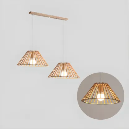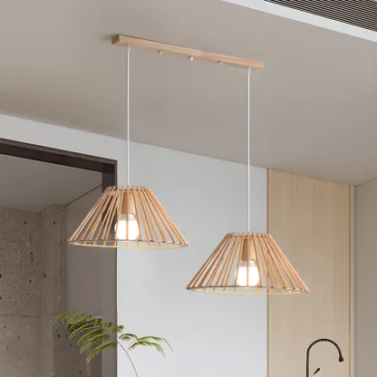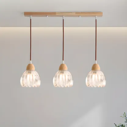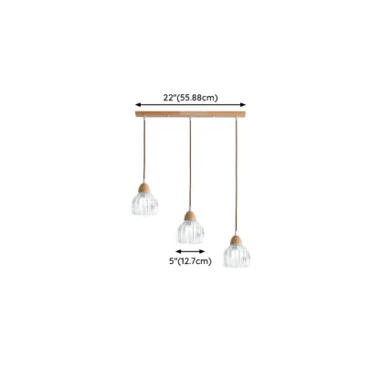 Glass Shade Wood Kitchen Island Pendant Light Adjustable Length