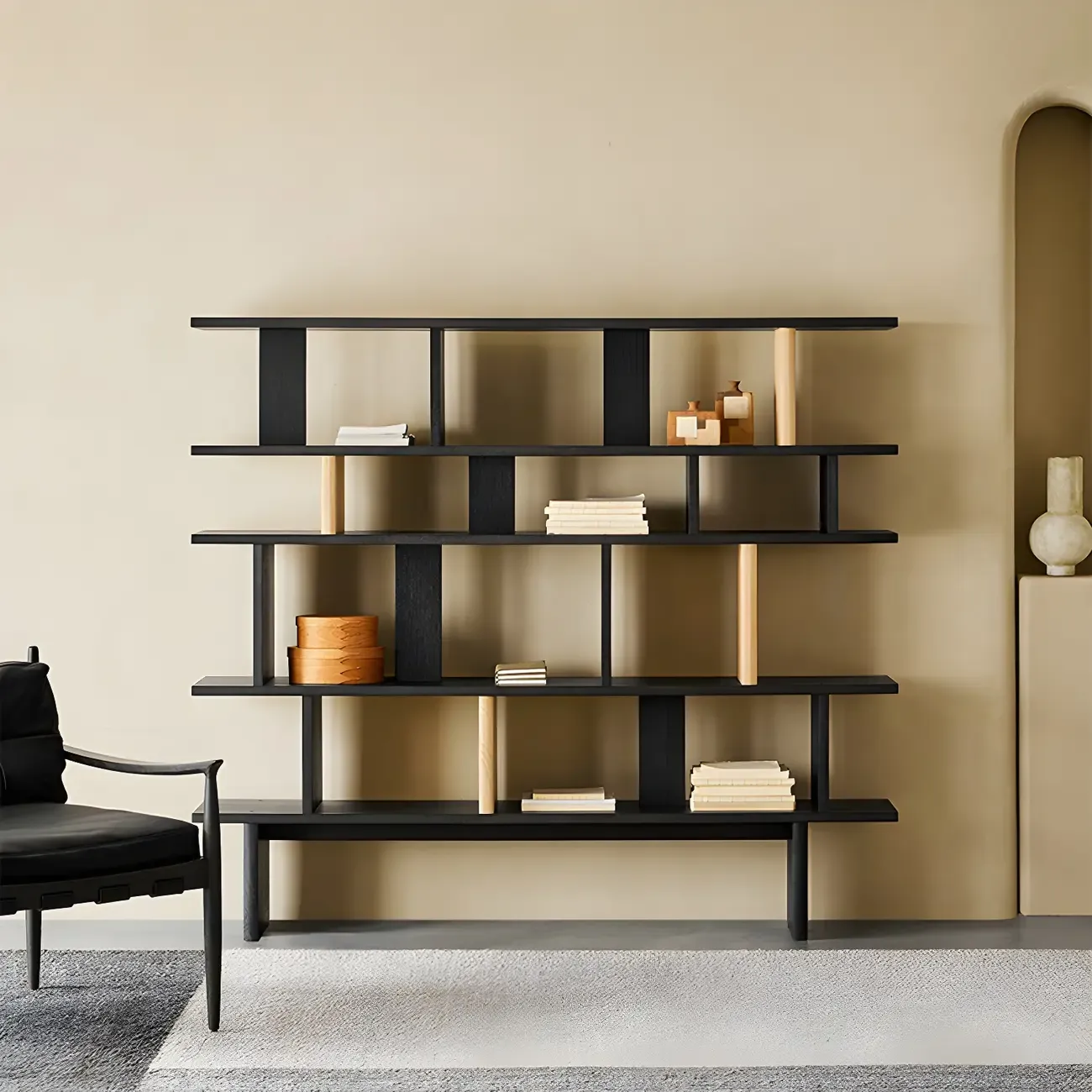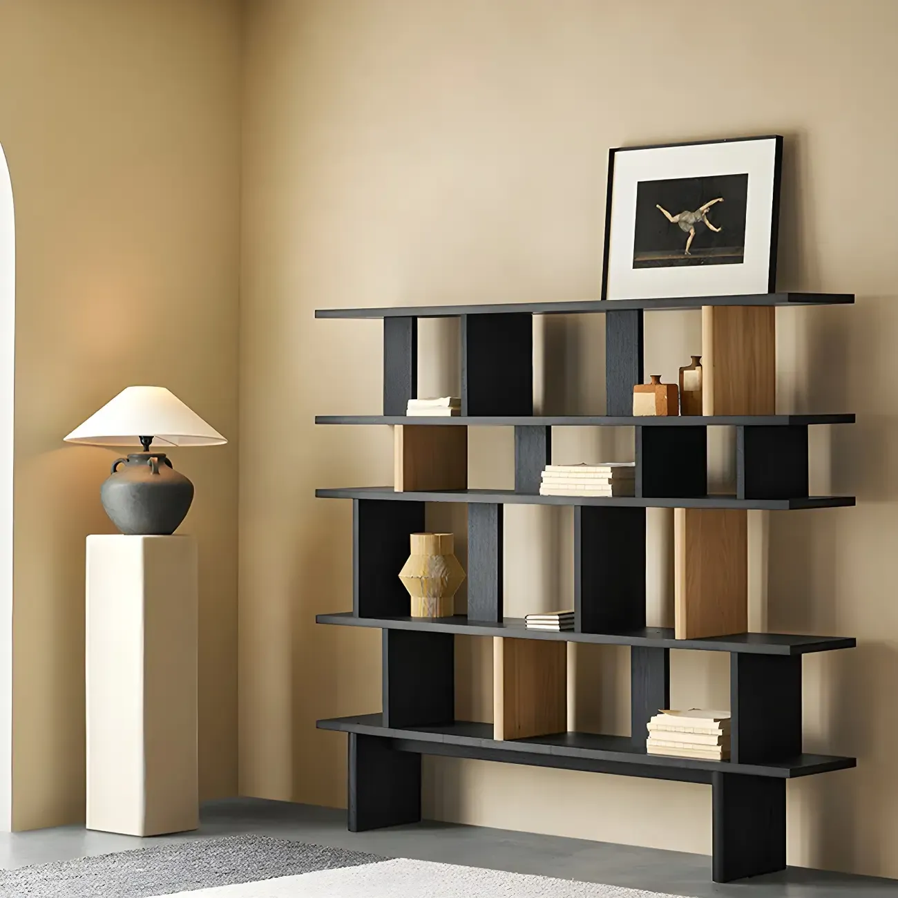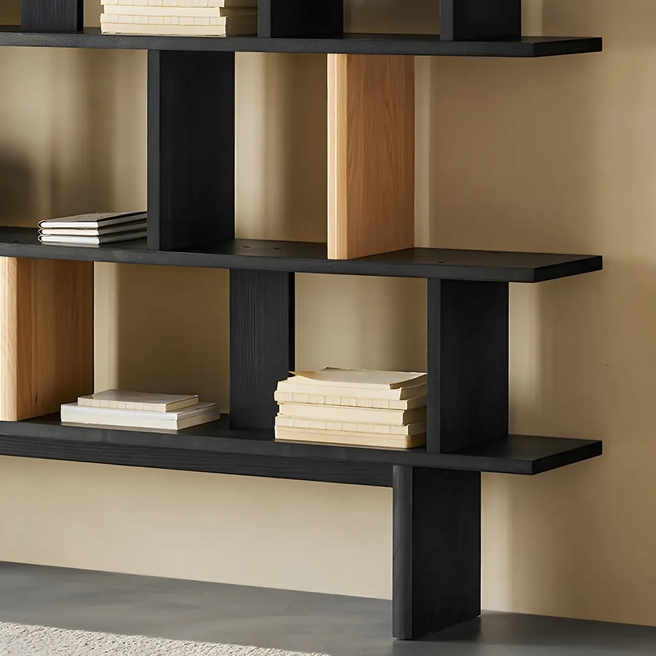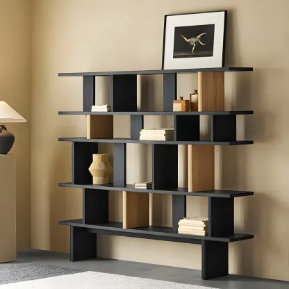 Modern Wooden Black Ladder Bookcase for Living Room
