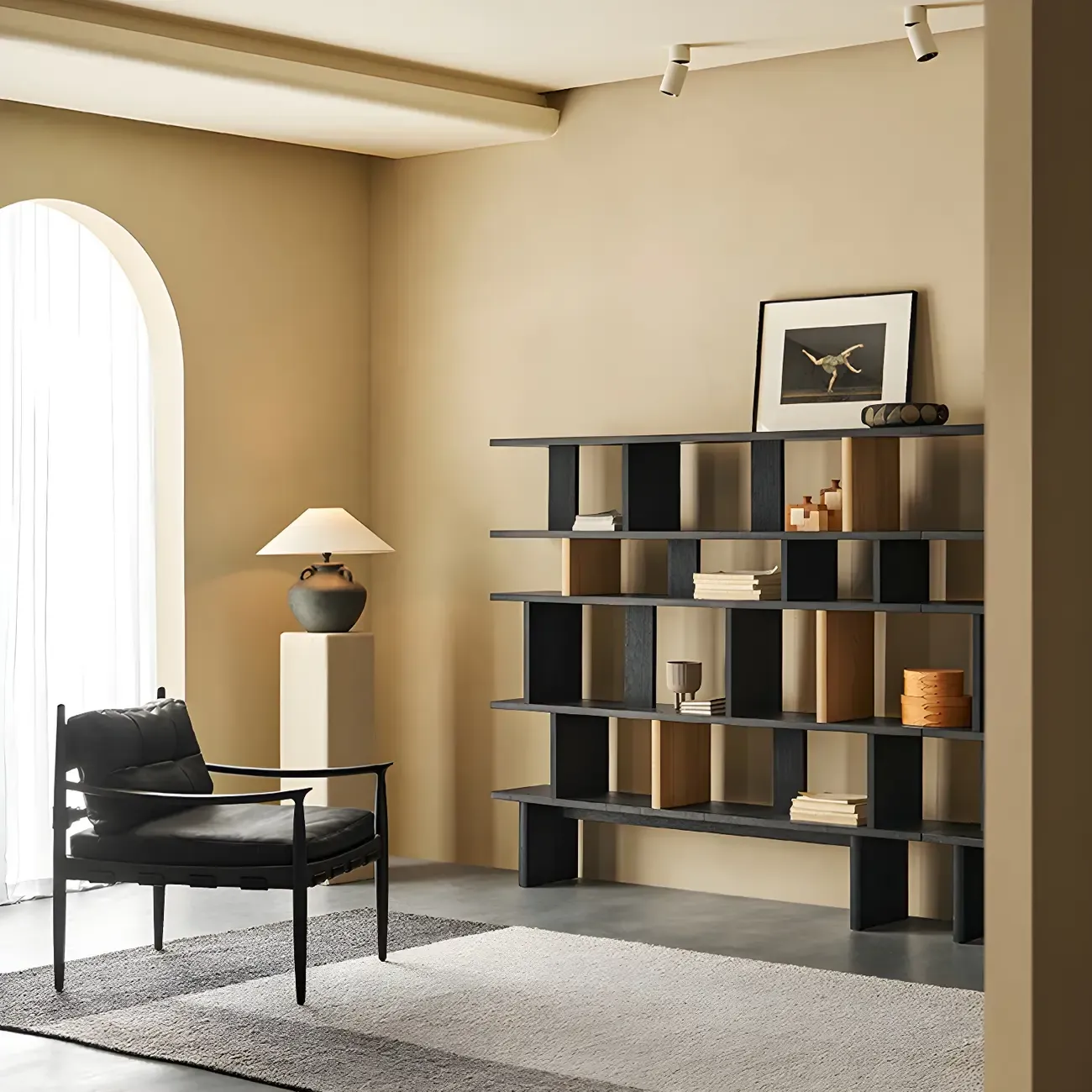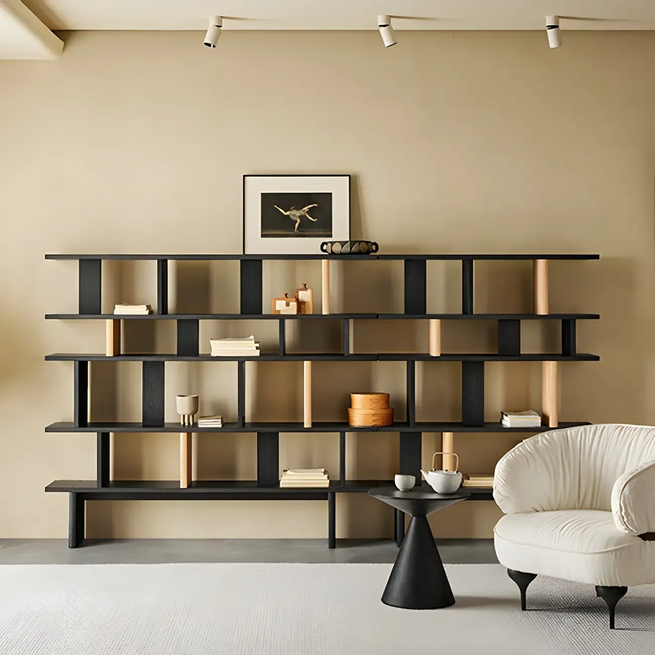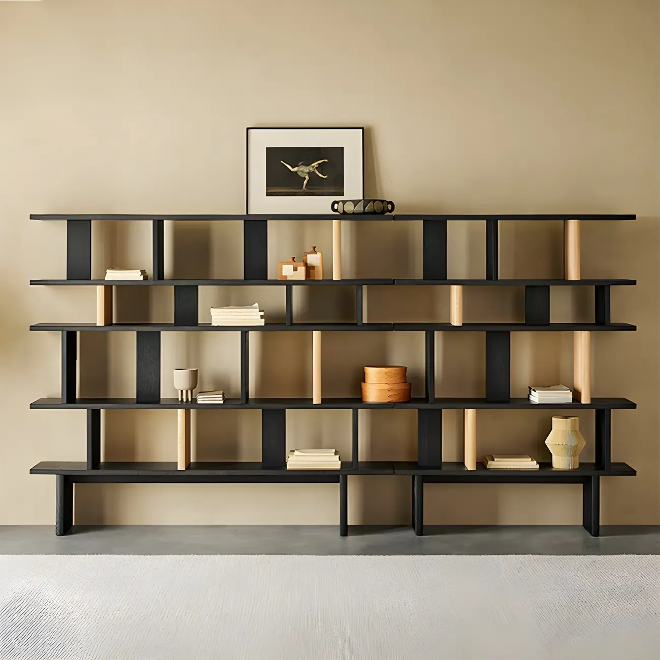 Modern Wooden Black Ladder Bookcase for Living Room