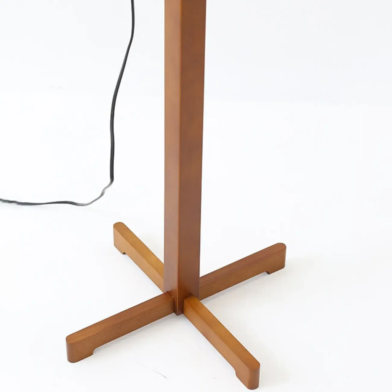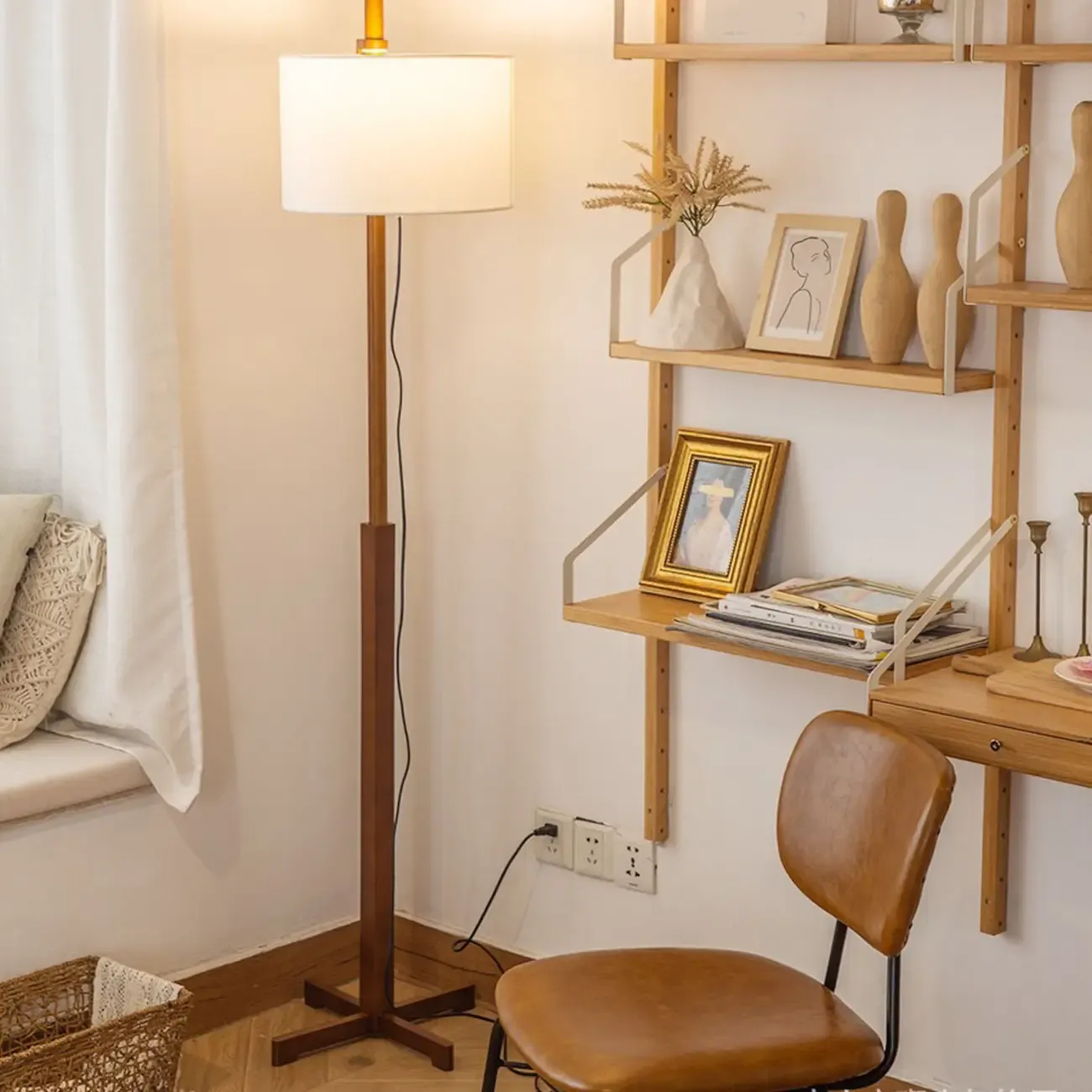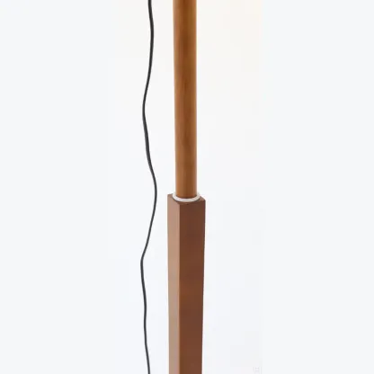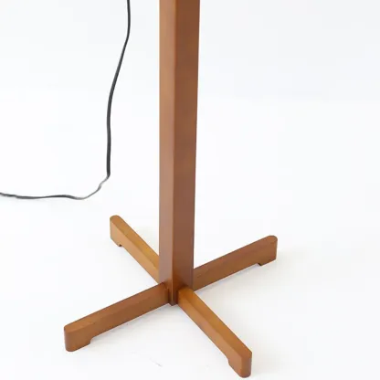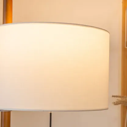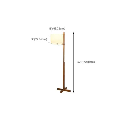 Modern Wooden Floor Lamp Fabric Shade Plug-In for Living Room