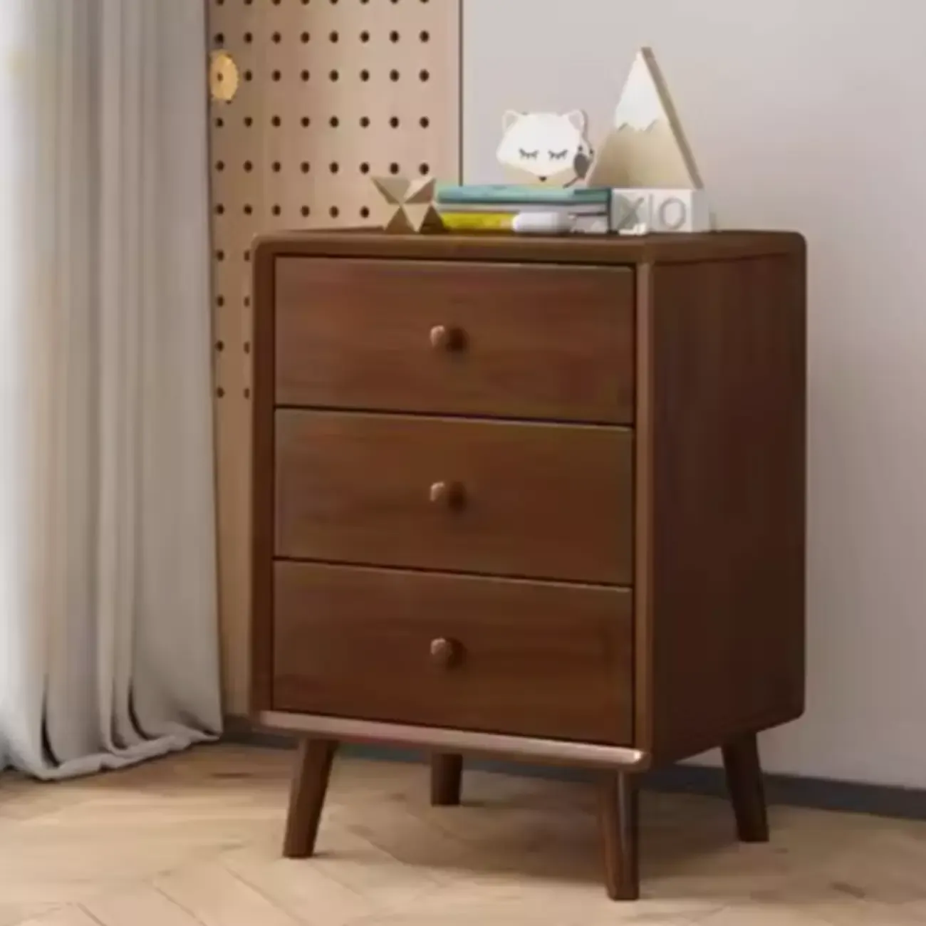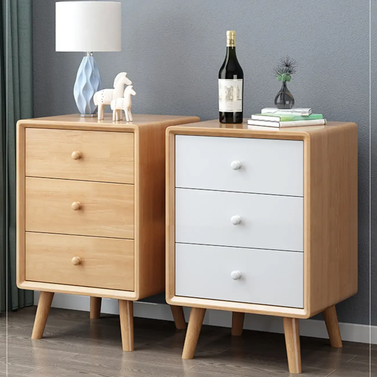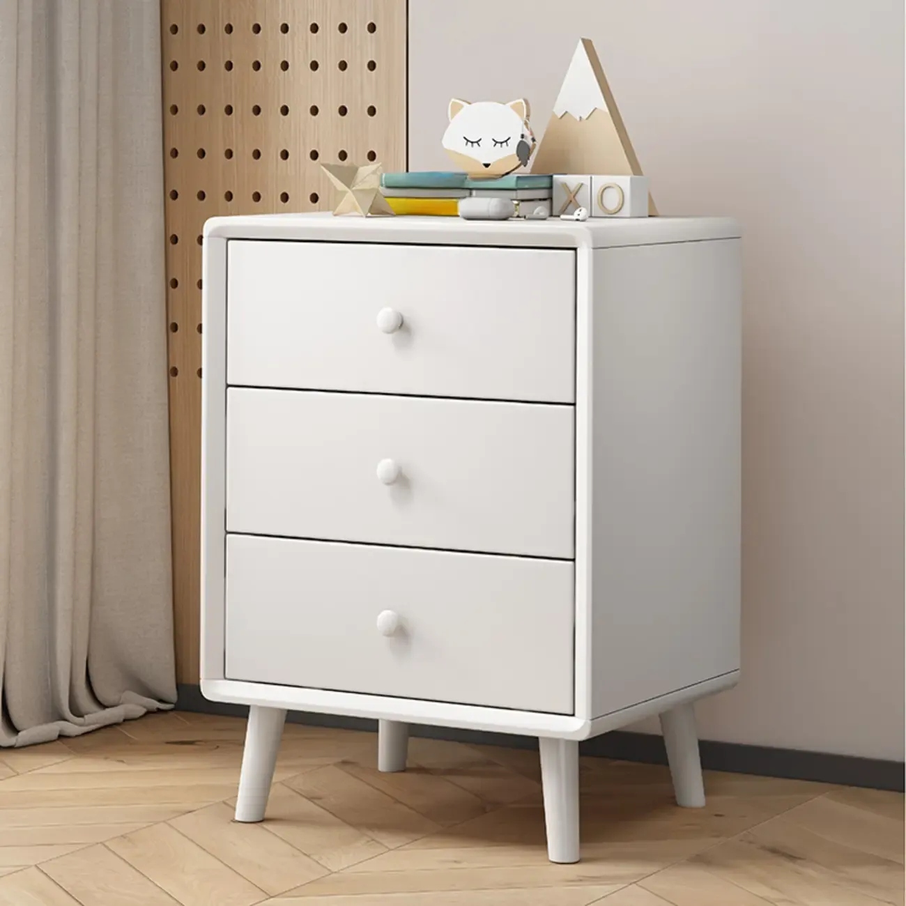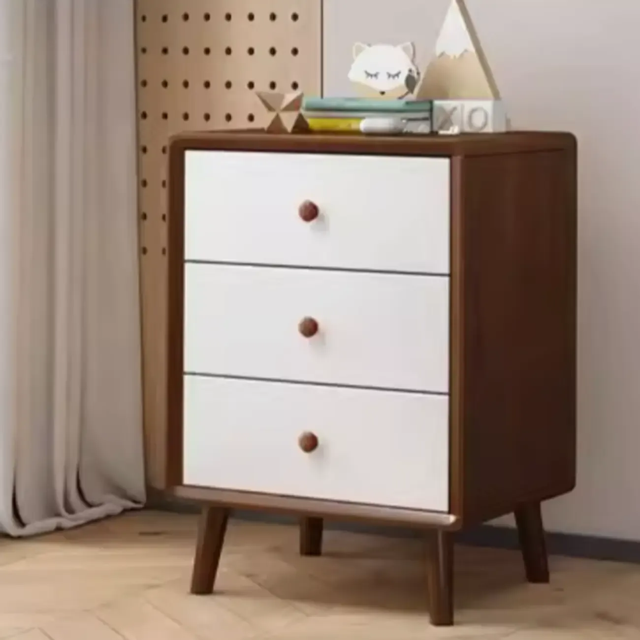 Modern Wooden Nightstand with 3 Storage Drawers