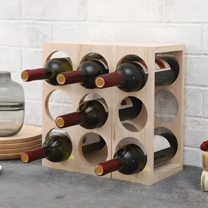 Natural Wooden Stackable Wine Rack Tabletop Wine Holder