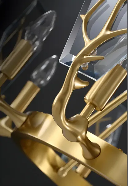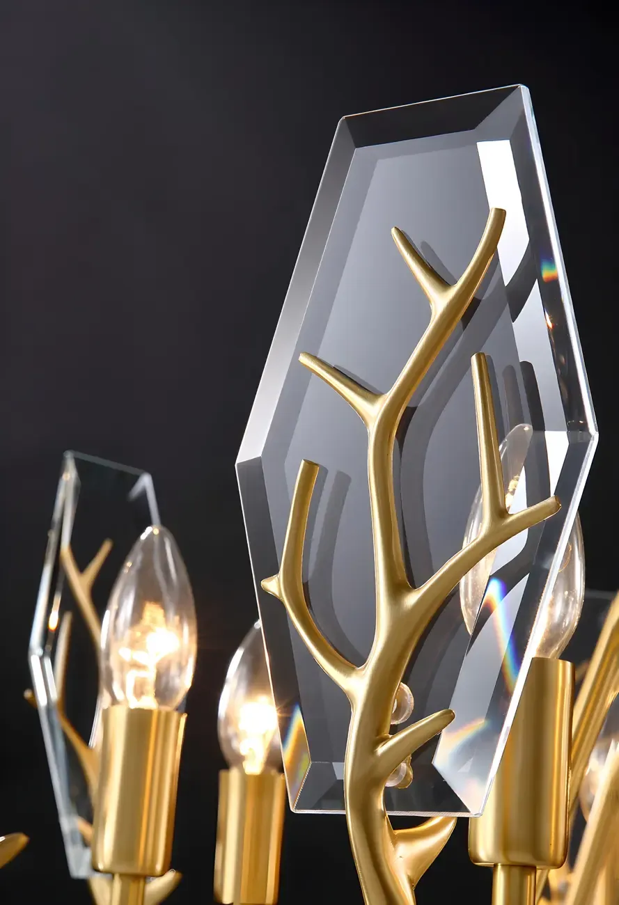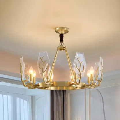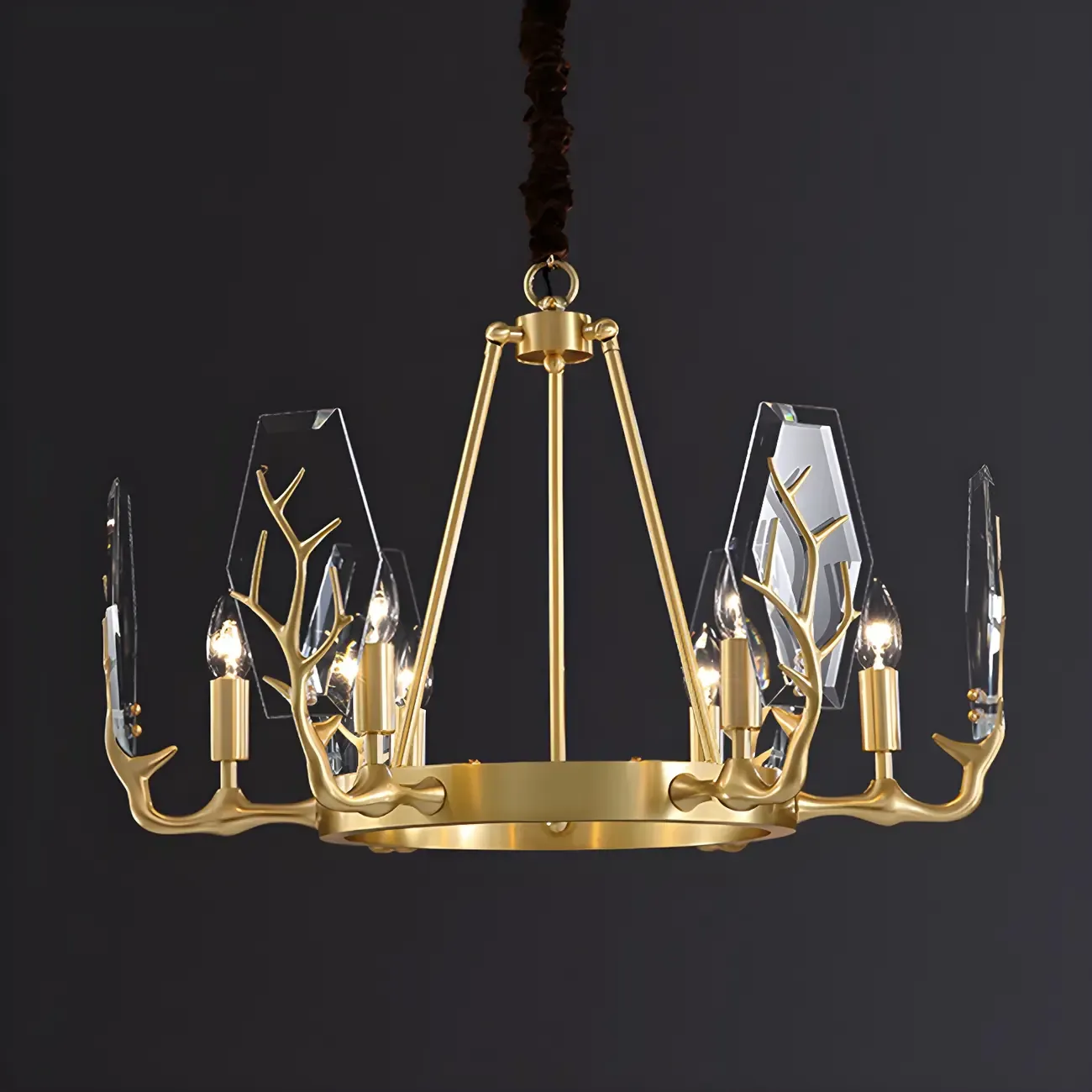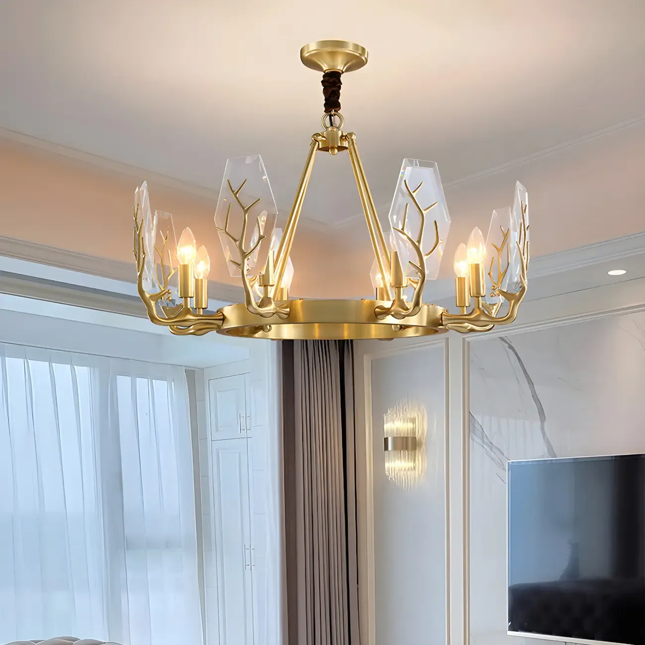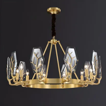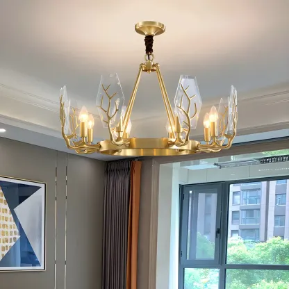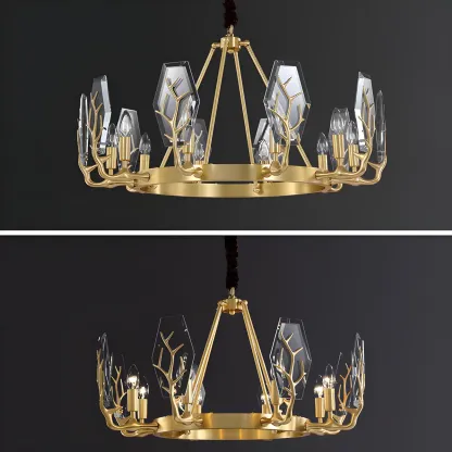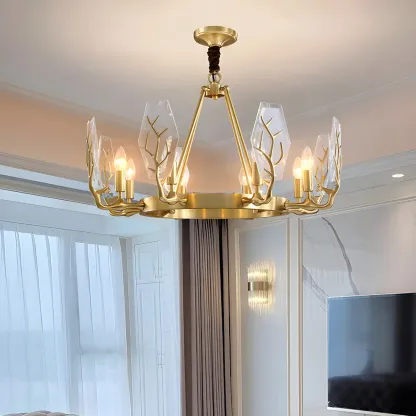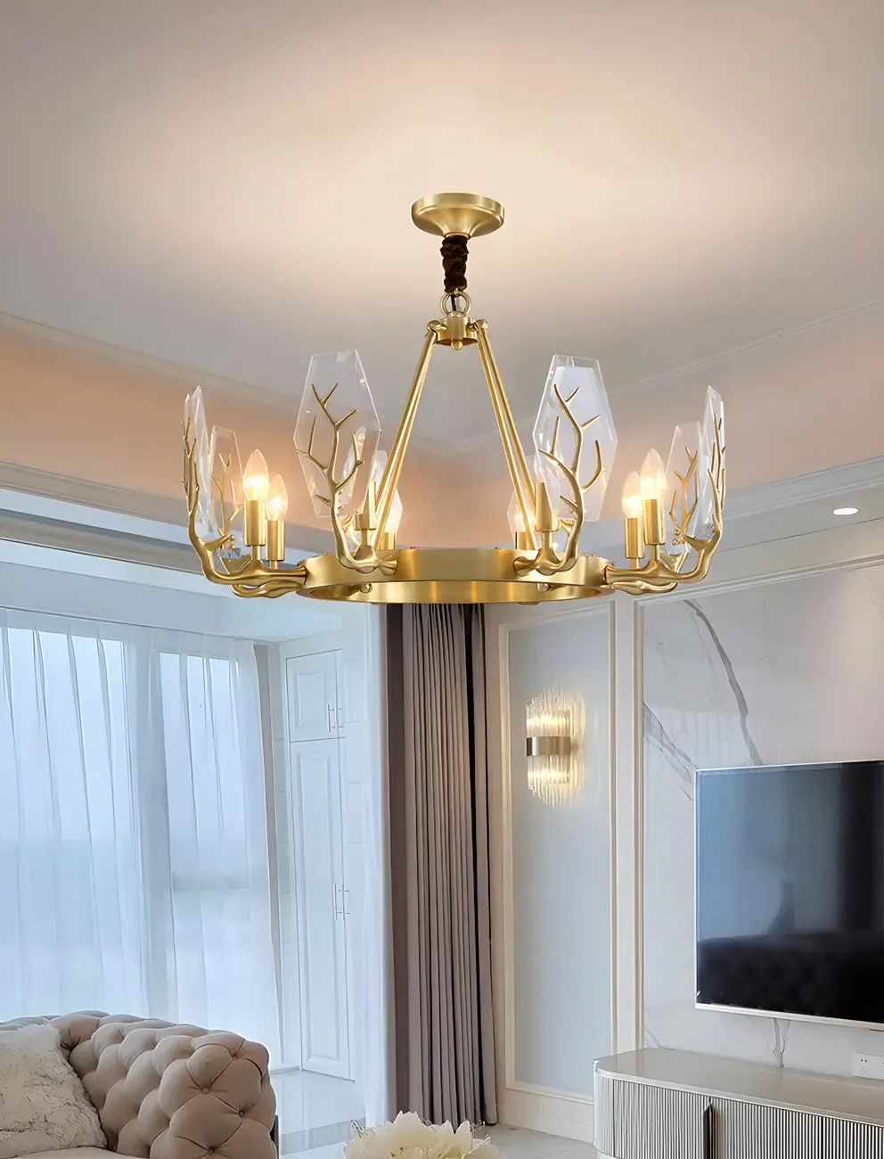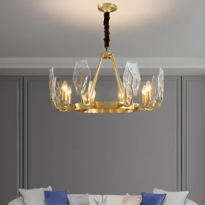 Nordic Gold Branch Glass Shade Candle Round Chandelier