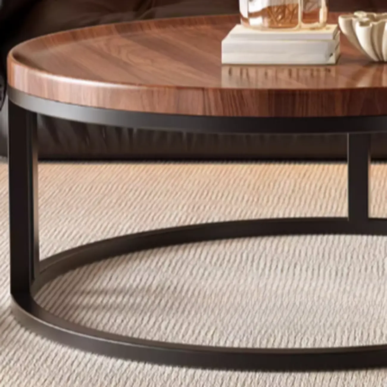 Round Modern Slate Glass Steel Frame Coffee Table