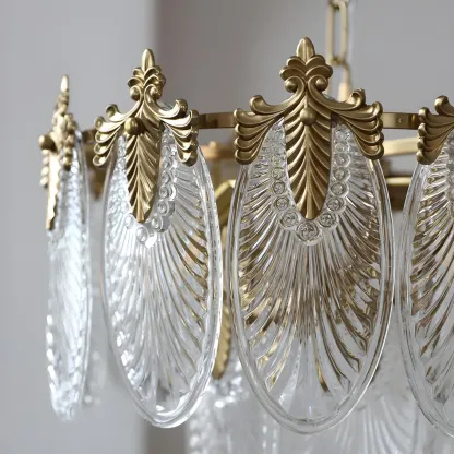 Elegant Brass Ribbed Glass Tiered Chandelier