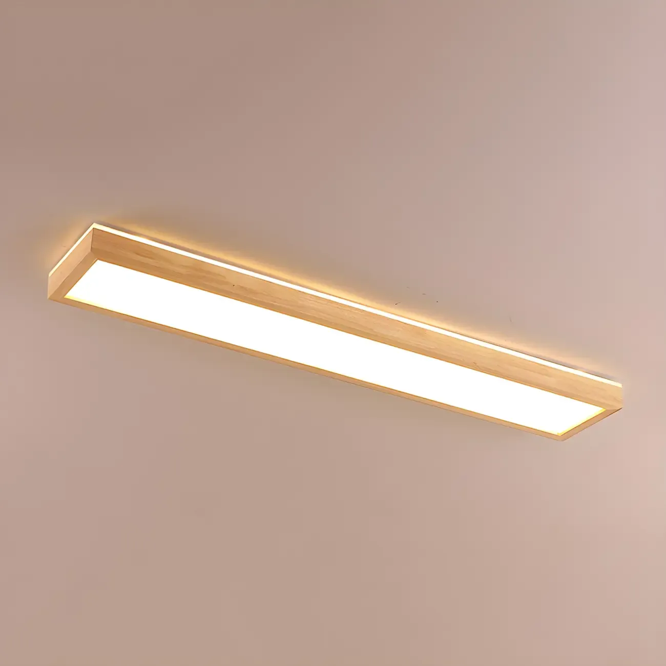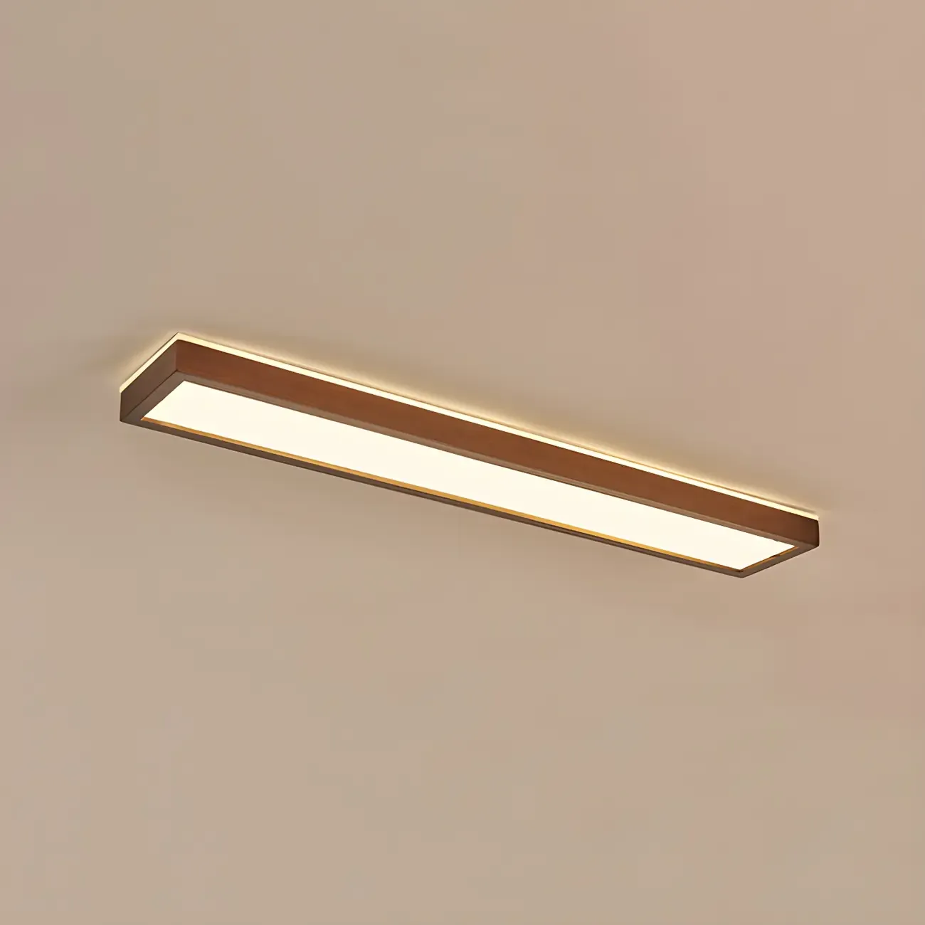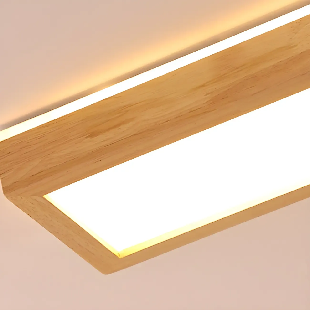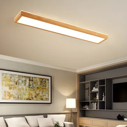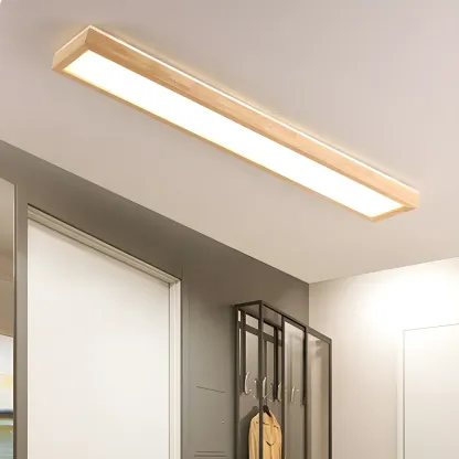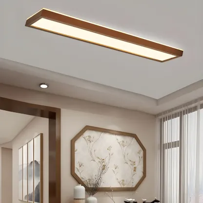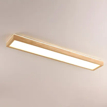 Rustic Rectangular Wood LED Dimmable Flush Ceiling Light