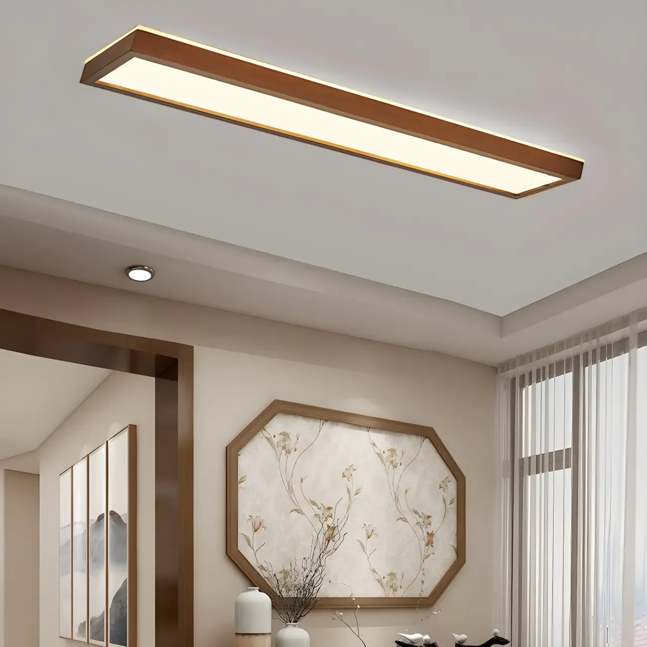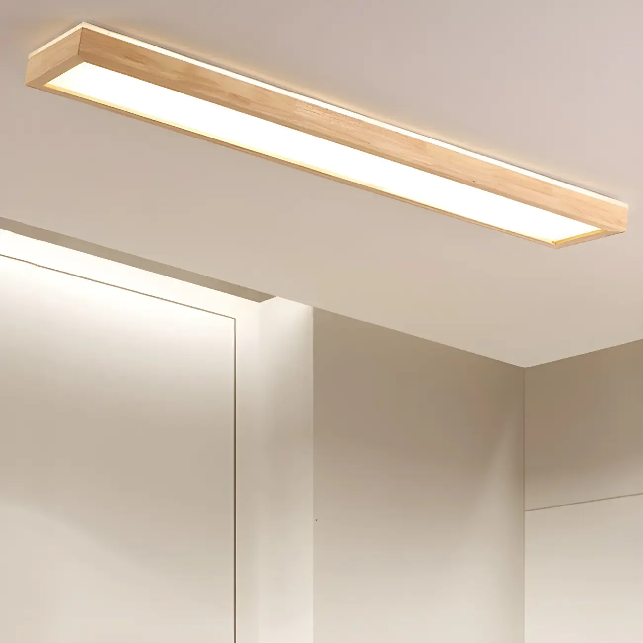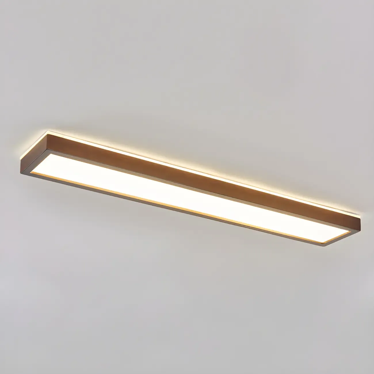 Rustic Rectangular Wood LED Dimmable Flush Ceiling Light