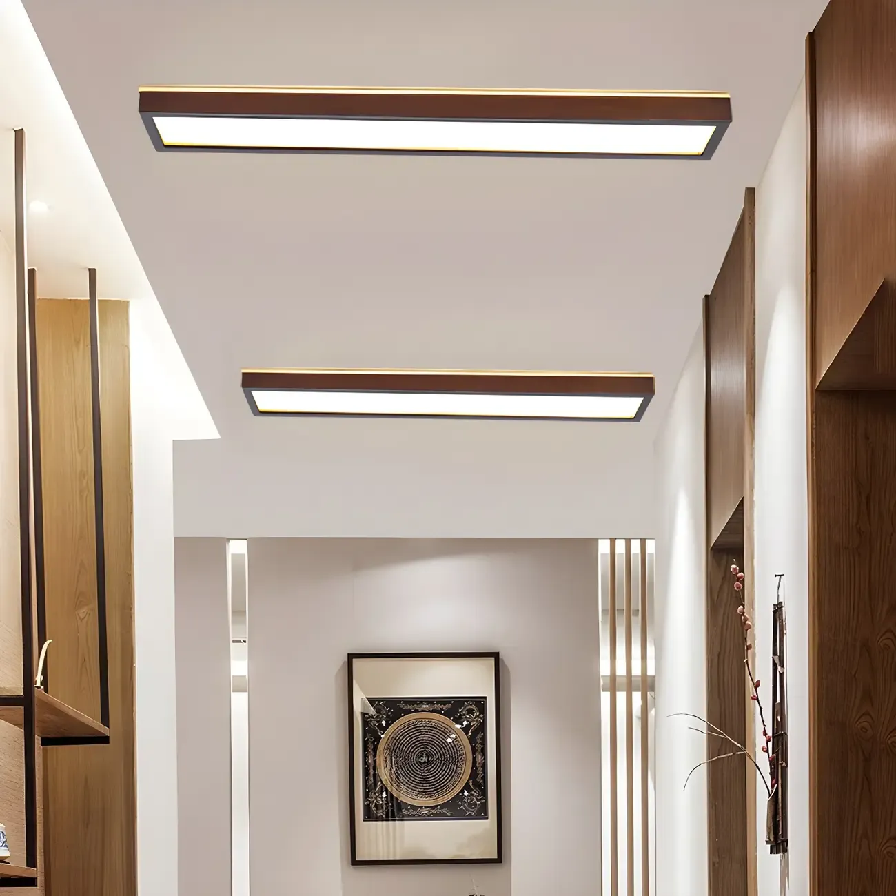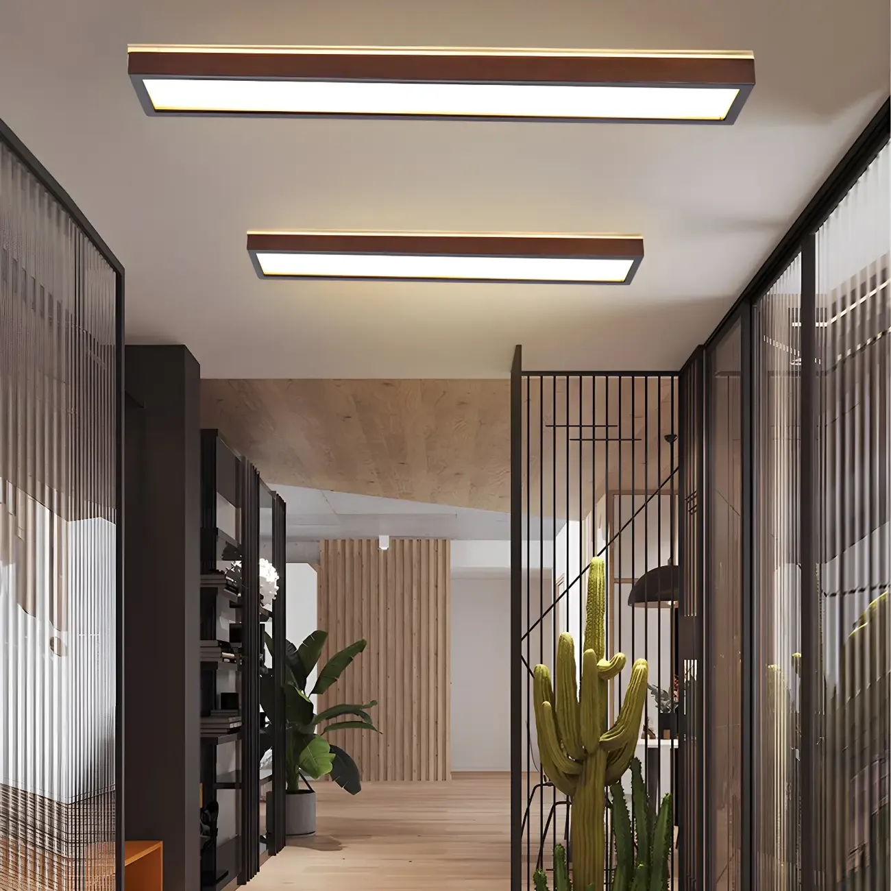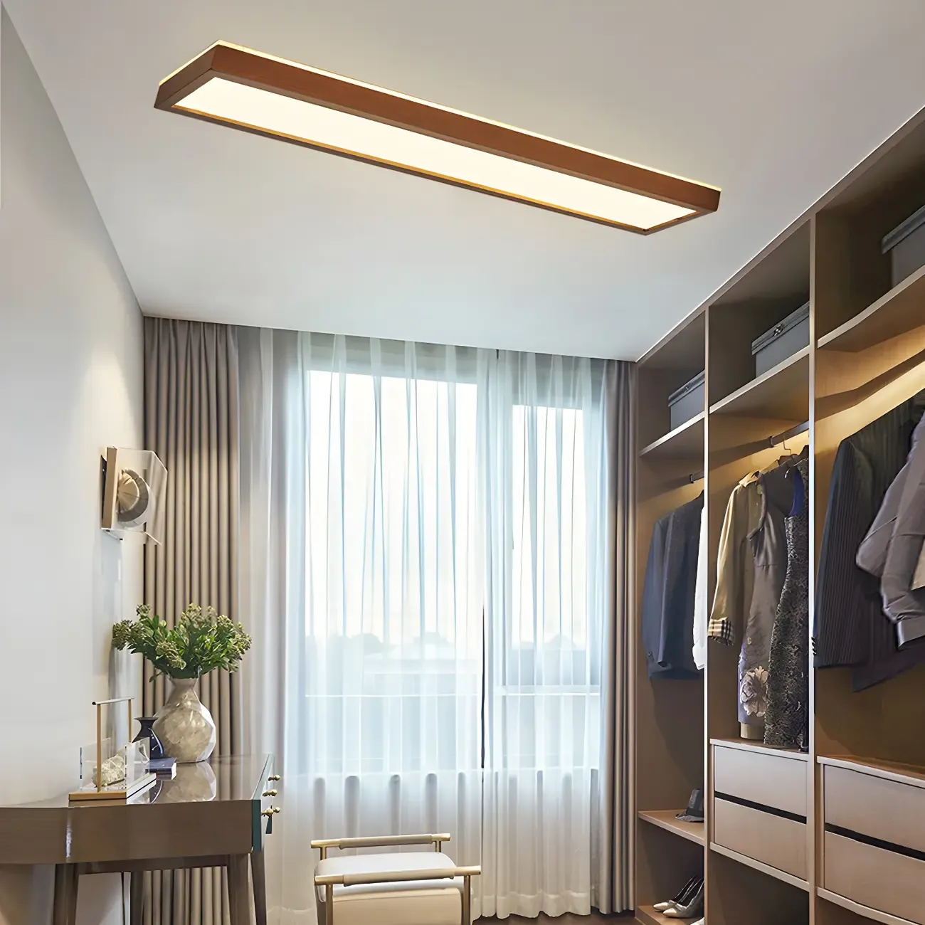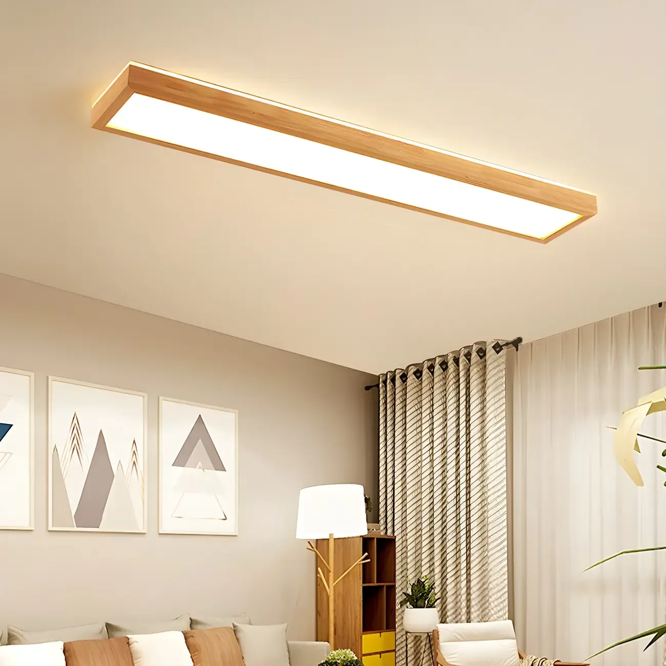 Rustic Rectangular Wood LED Dimmable Flush Ceiling Light