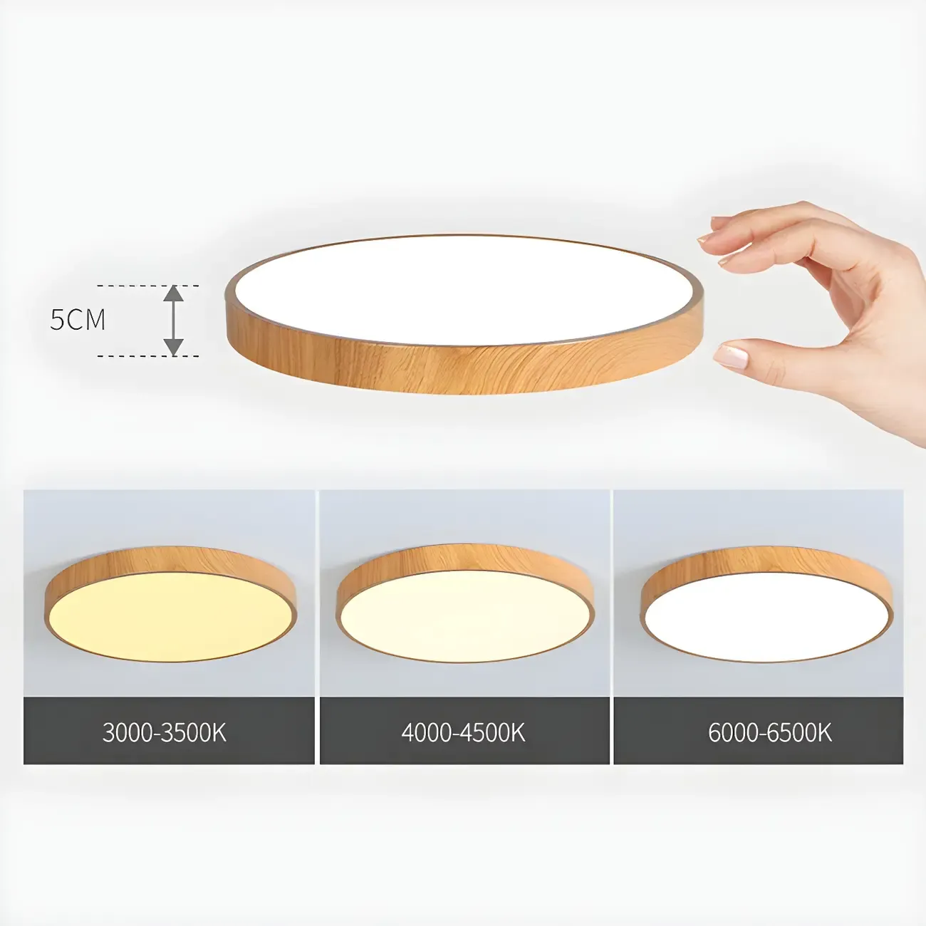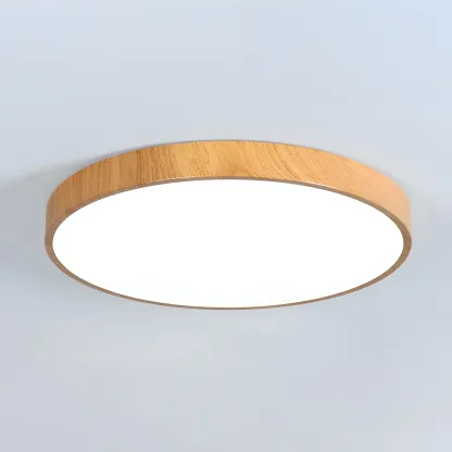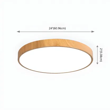 Natural Rustic Wood Color Flush Mount White LED Ceiling Light