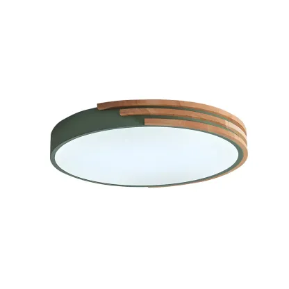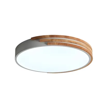 Modern Wood Round Flush Mount White LED Ceiling Light
