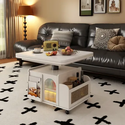 Square Extendable Wooden Wheeled Lift-Top Coffee Table