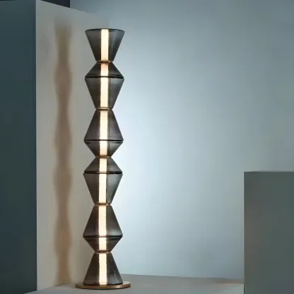 Stylish Stacked Cone Black Glass Warm LED Floor Lamp