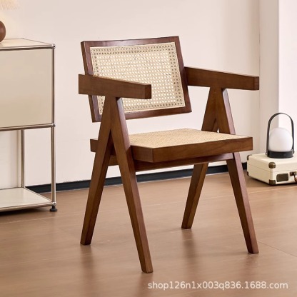 Traditional Modern Square Armless Wood Rattan Dining Chair
