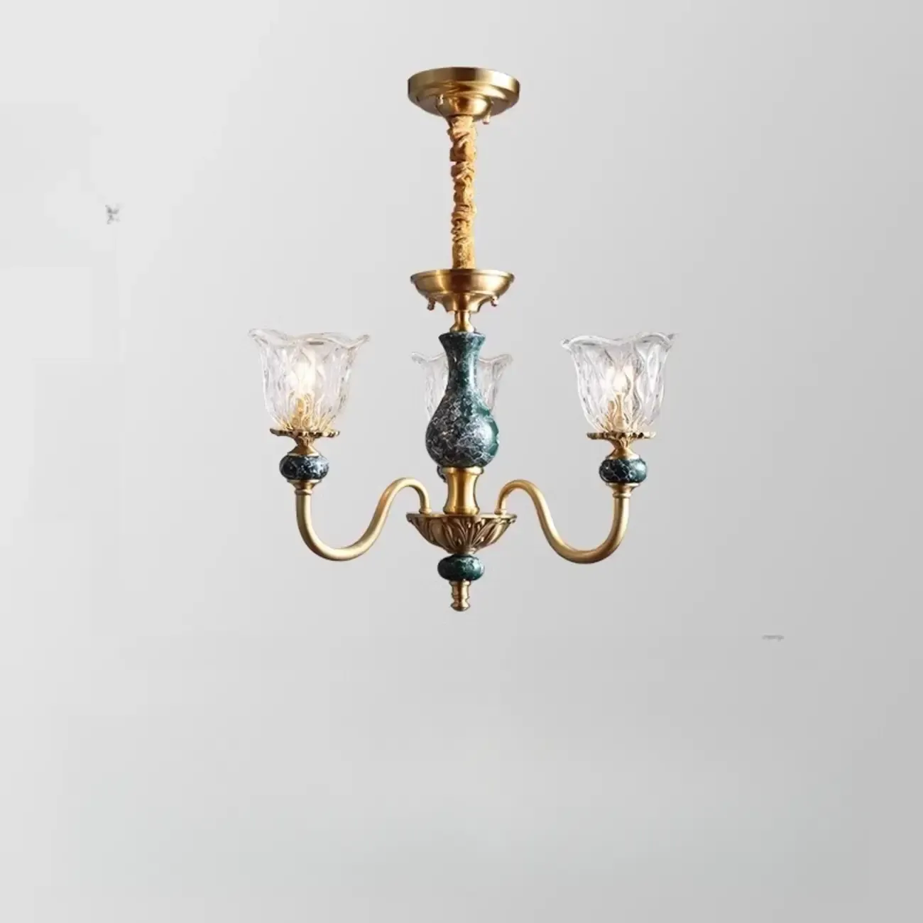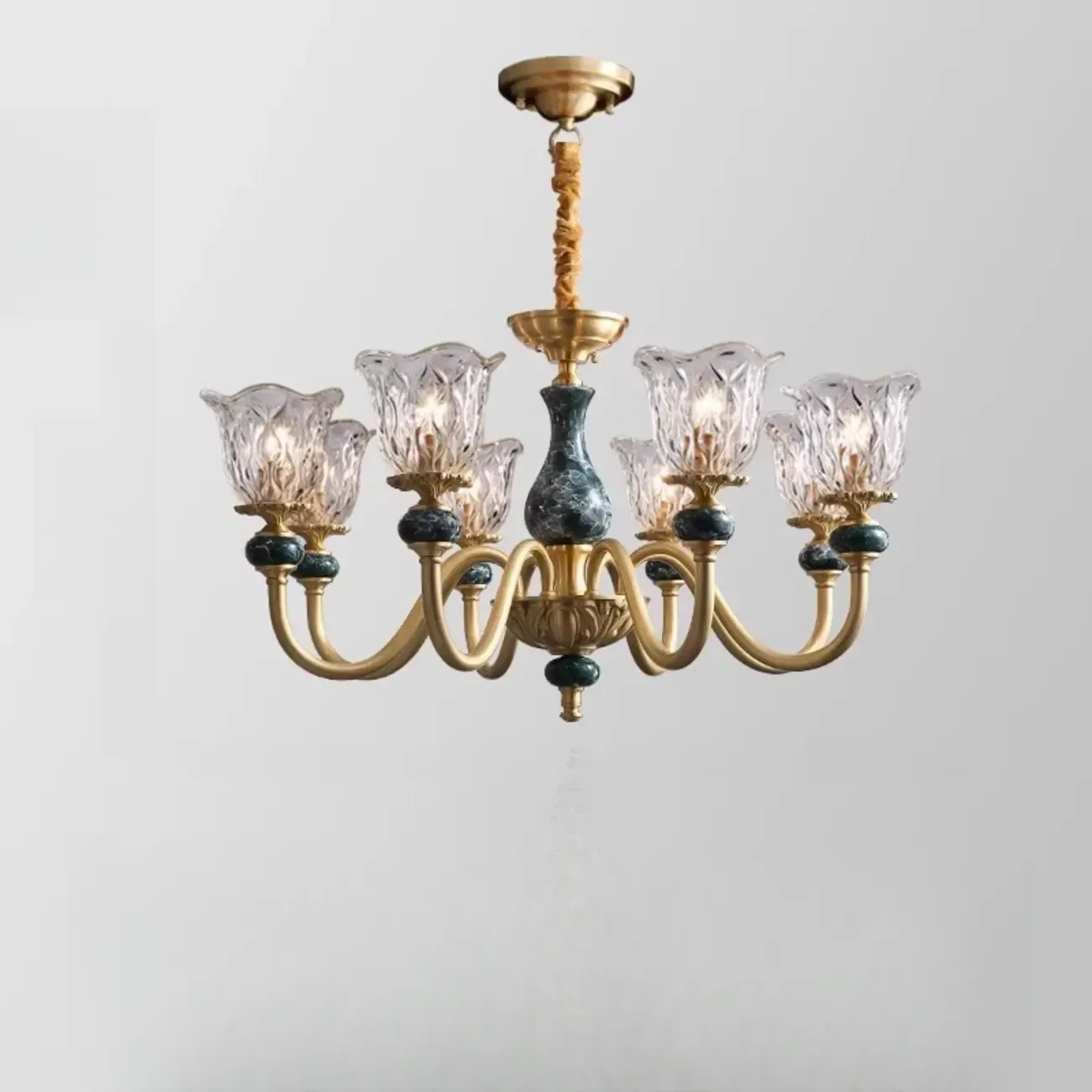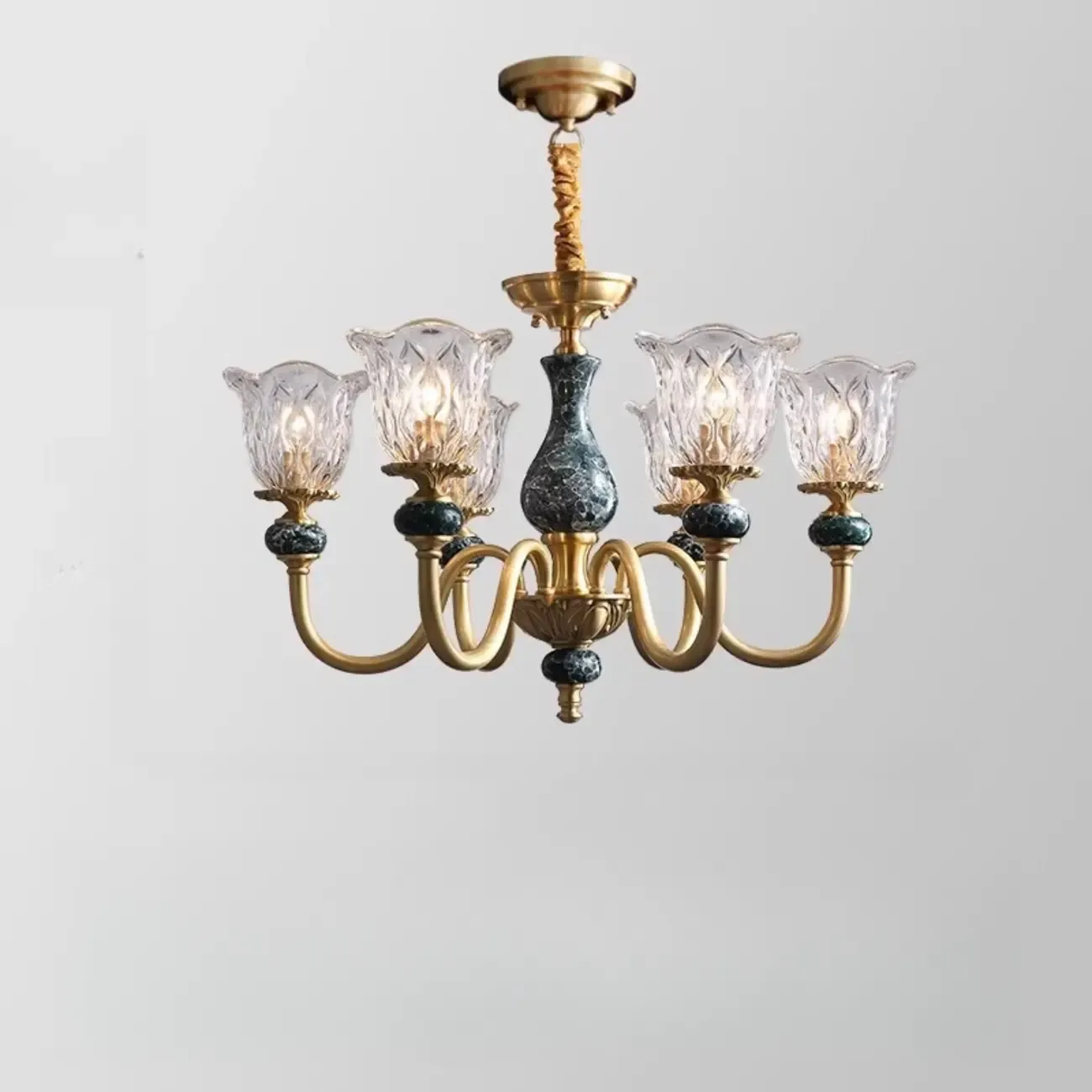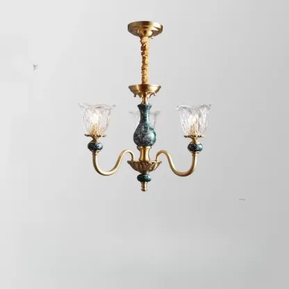 Vintage Living Room Brass Glass Flower Shape Up Light Chandelier