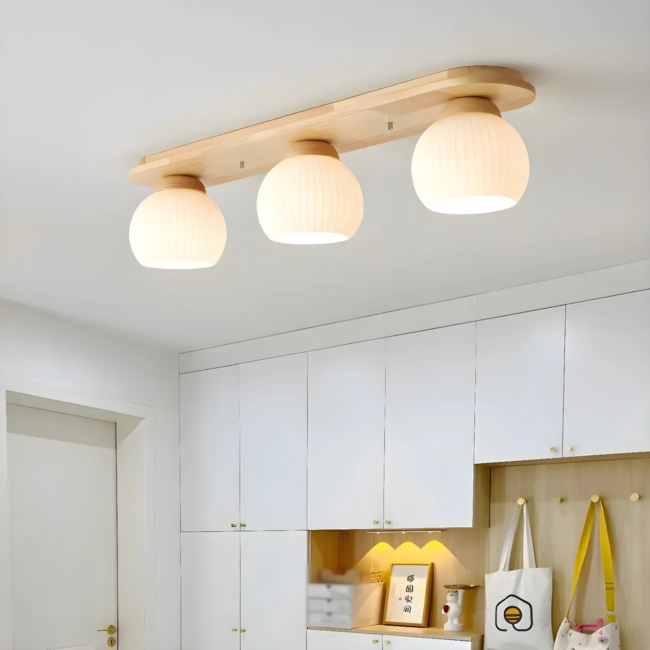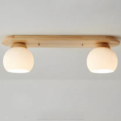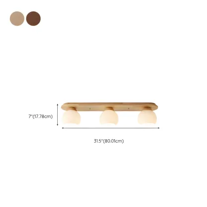 White Globe Glass Natural Wood Flush Mount Ceiling Light