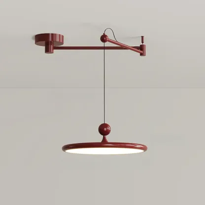 Modern Metal Red Swing Arm Pendant Light with Acrylic Shade